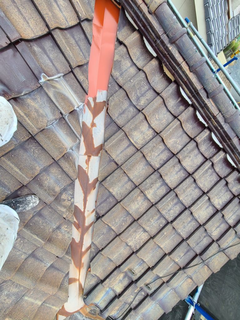 本日は住宅の塗装でサビ止め塗装をしましたが、瓦屋根の形状により合わさった谷の部分は鉄板でできてる事が多く屋根の塗装がなくても1度は上がって漆喰などの剥がれなどのチェックをいれるようにしています!